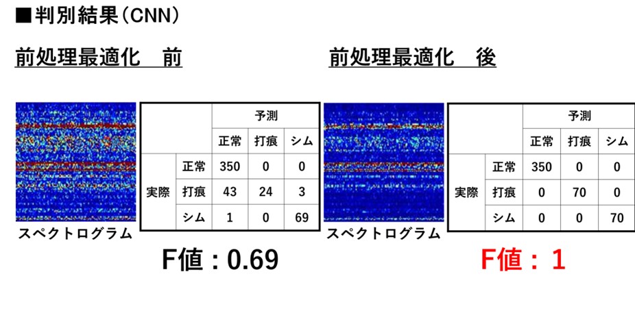 そのような雑音成分が大きな場合には信号処理による雑音抑制が必須となります。信号成分と雑音成分のスぺクトルに違いがある場合は移動平均やディジタルフィルタ等が有効ですし、信号成分と雑音成分のスぺクトルの形状が似ている場合には、ε分離非線形ディジタルフィルタや適応平滑化法・メディアンフィルタ等の非線形フィルタが有効です。ある程度規則性のある信号が期待できる場合にはカルマンフィルタを用いることもできます。時間周波数解析してスペクトログラムにするだけでも、スペクトログラム上で信号成分と雑音成分が分離できることが多いのでルールベースや人工知能による判定が容易になります。